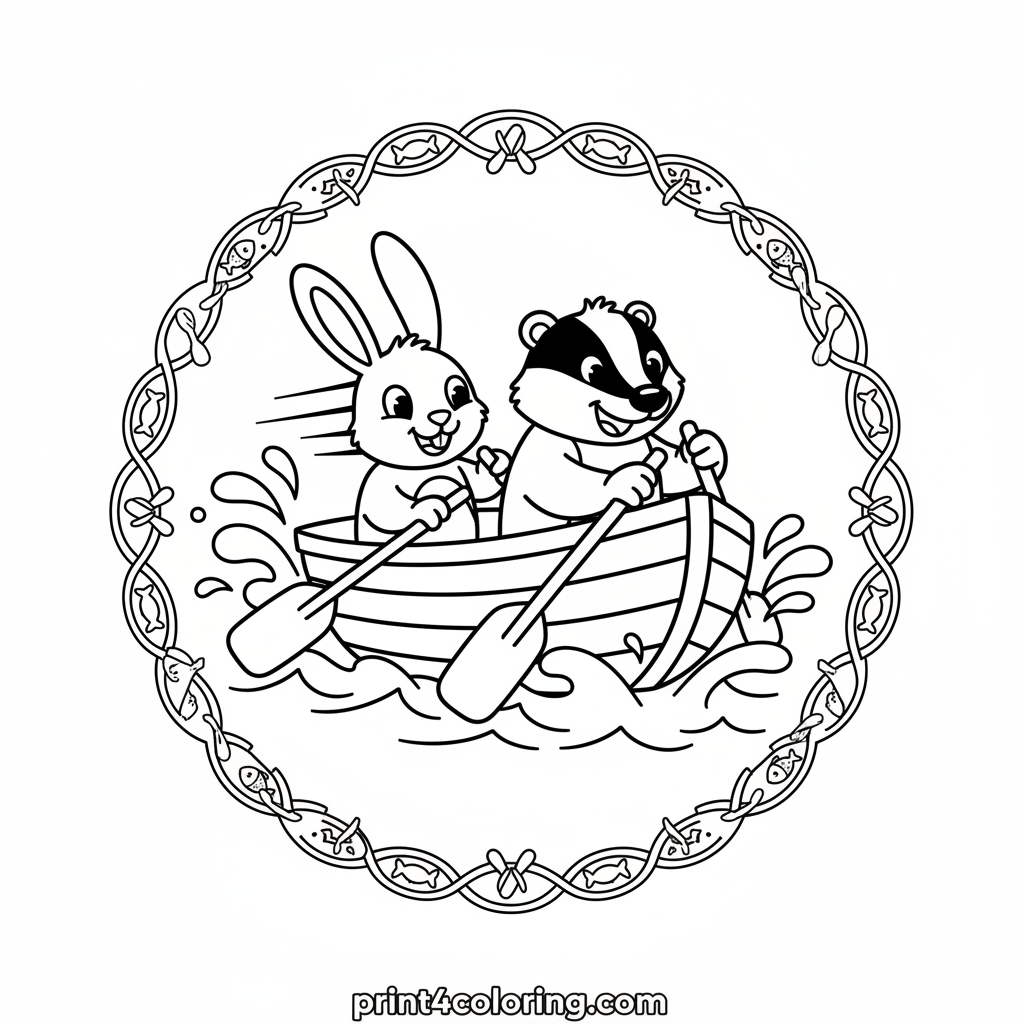 #rabbit#badger#rowboat#race#animals#water#river#friends#pattern-frame#coloring-page#printable