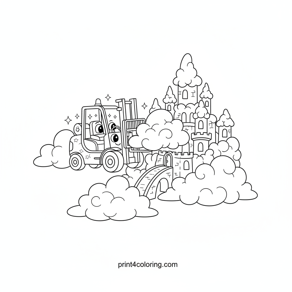 #magical-forklift#cloud-castle#fantasy-vehicles#sky-builder#whimsical#coloring-page#printable