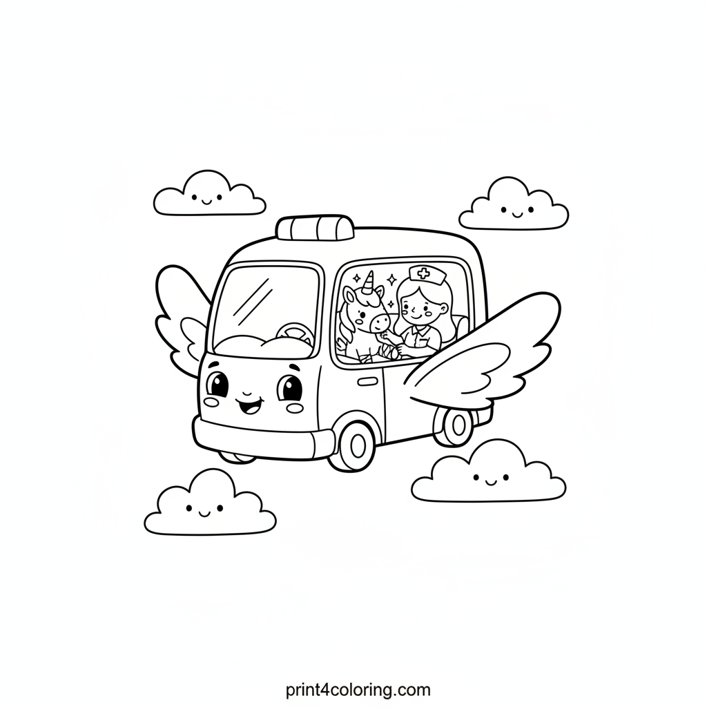 - 3✨ Ambulance Glow - Make the magical ambulance stand out with bright, friendly colors like a vibrant teal, pink, or a cheerful red. Don't forget to add a soft glow around its tiny wings!