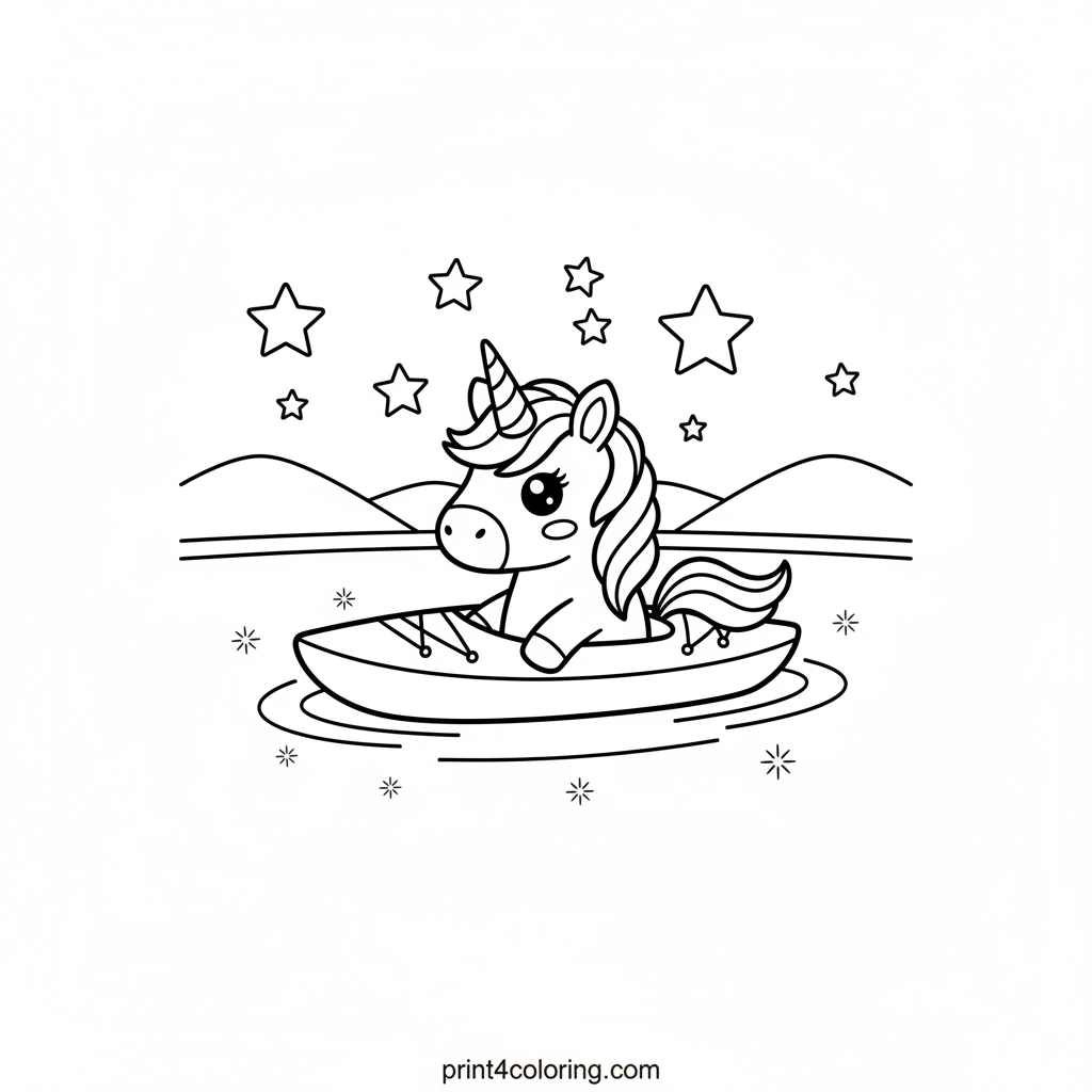 Unicorn's Starry Night Kayak Adventure Coloring Page