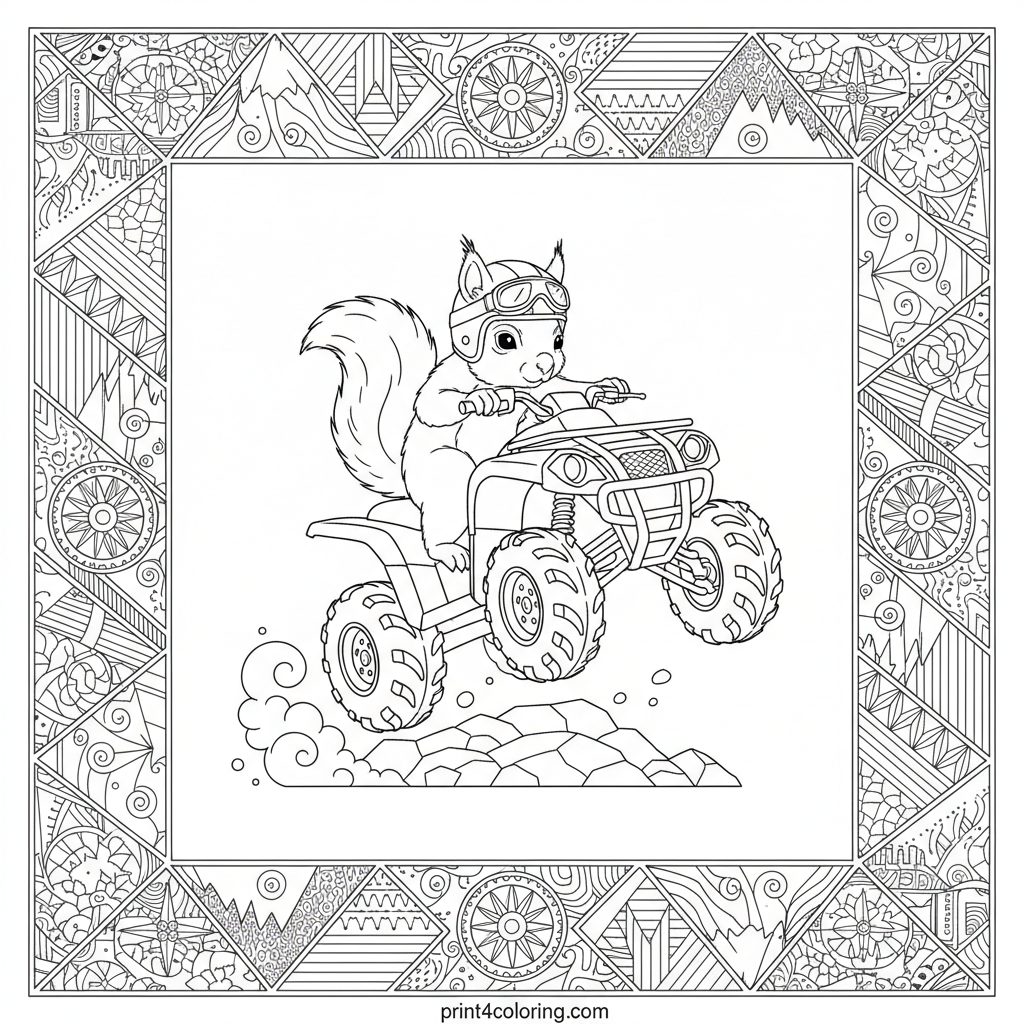 #quad#ATV#mountain#adventure#off-road#animal-rider#jump#dust#vehicles#action#coloring-page#printable