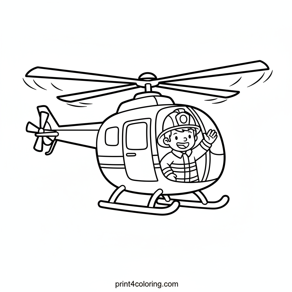 Zooming Firefighter Rescue Helicopter Coloring Page